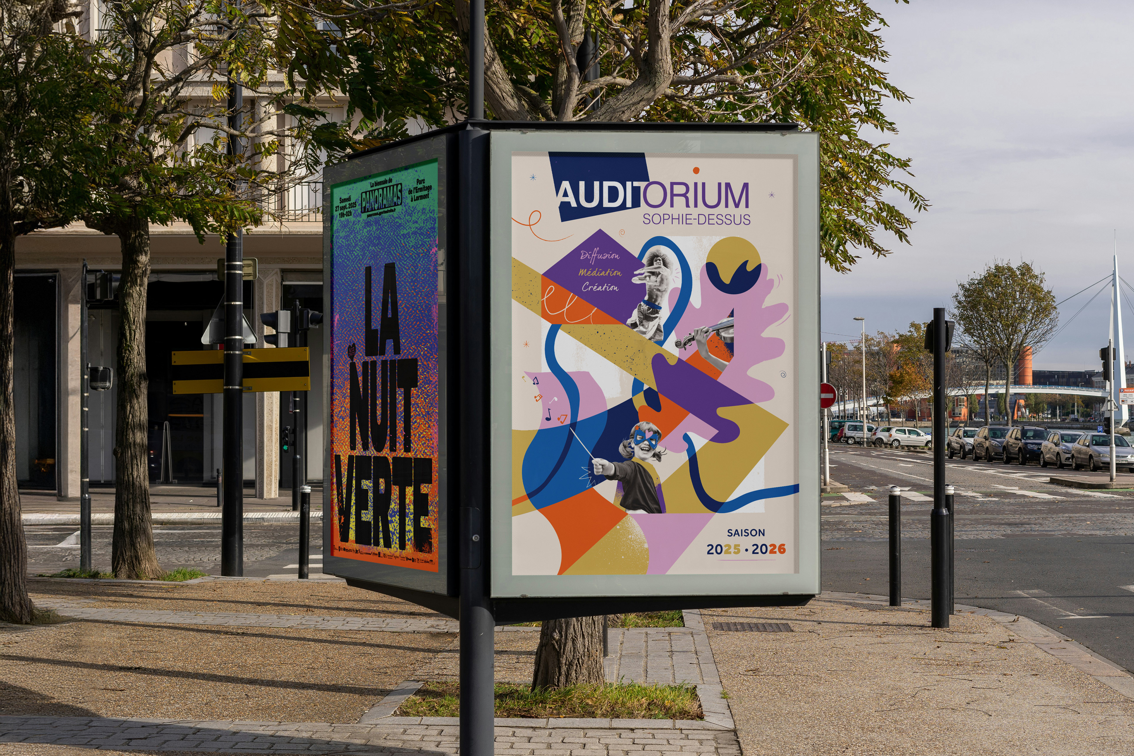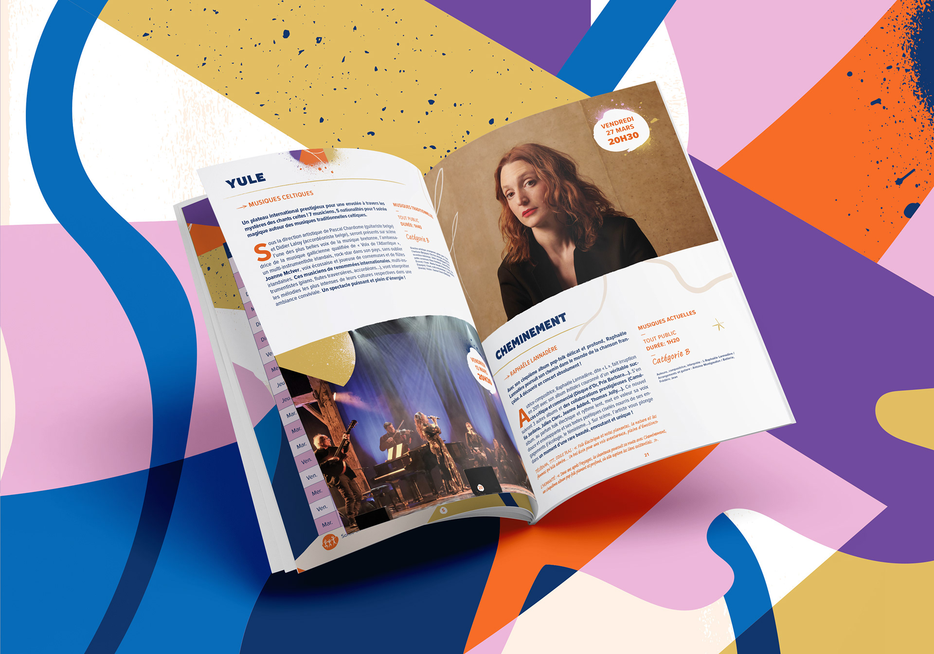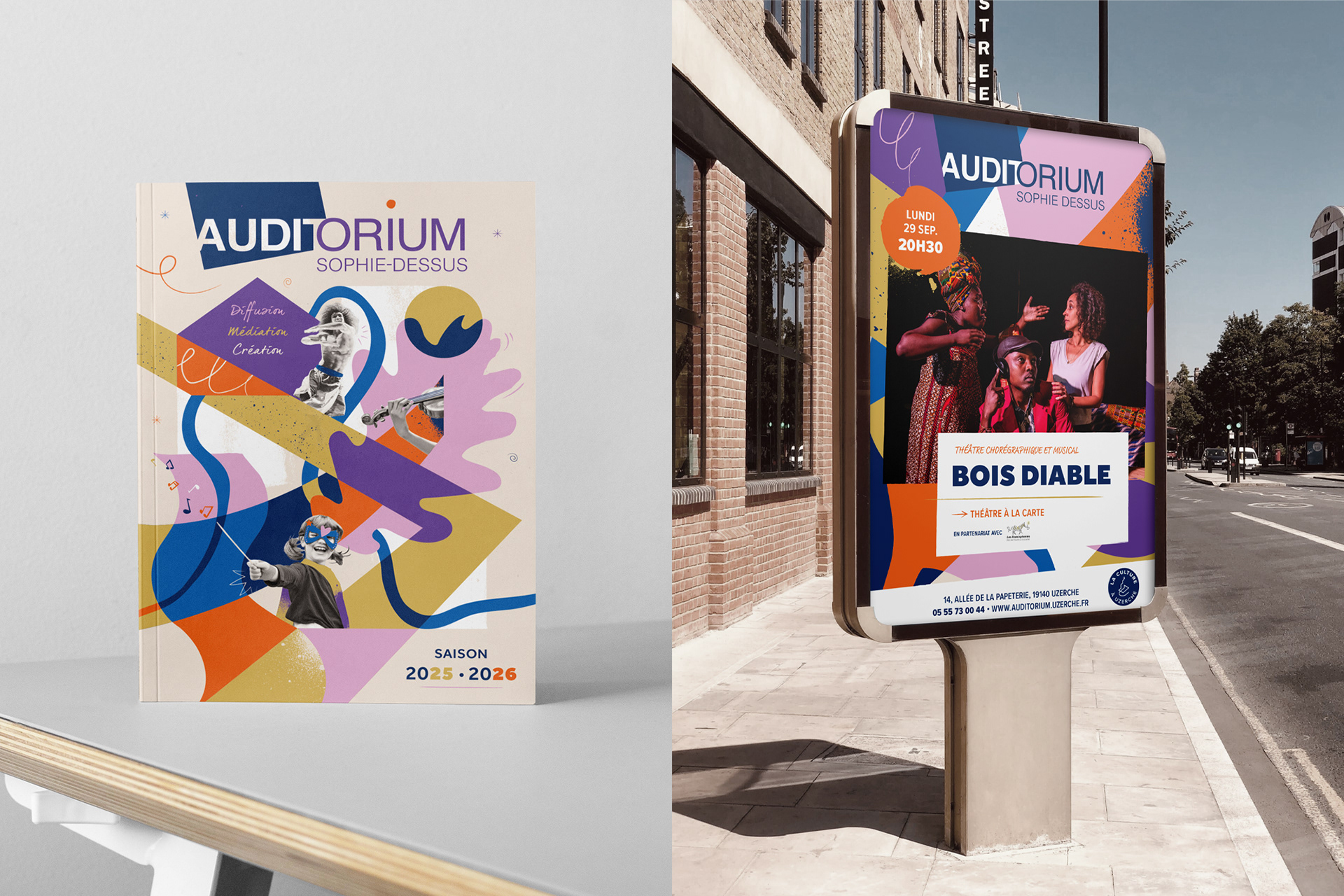 Création de l’identité visuelle des deux dernières saisons de l’Auditorium Sophie Dessous d’Uzerche. Déclinaison sur la brochure, kakémonos, vitrophanie, flyer etc. Une imagerie colorée, dynamique, à l'image de la ville et de son dynamisme culturel.