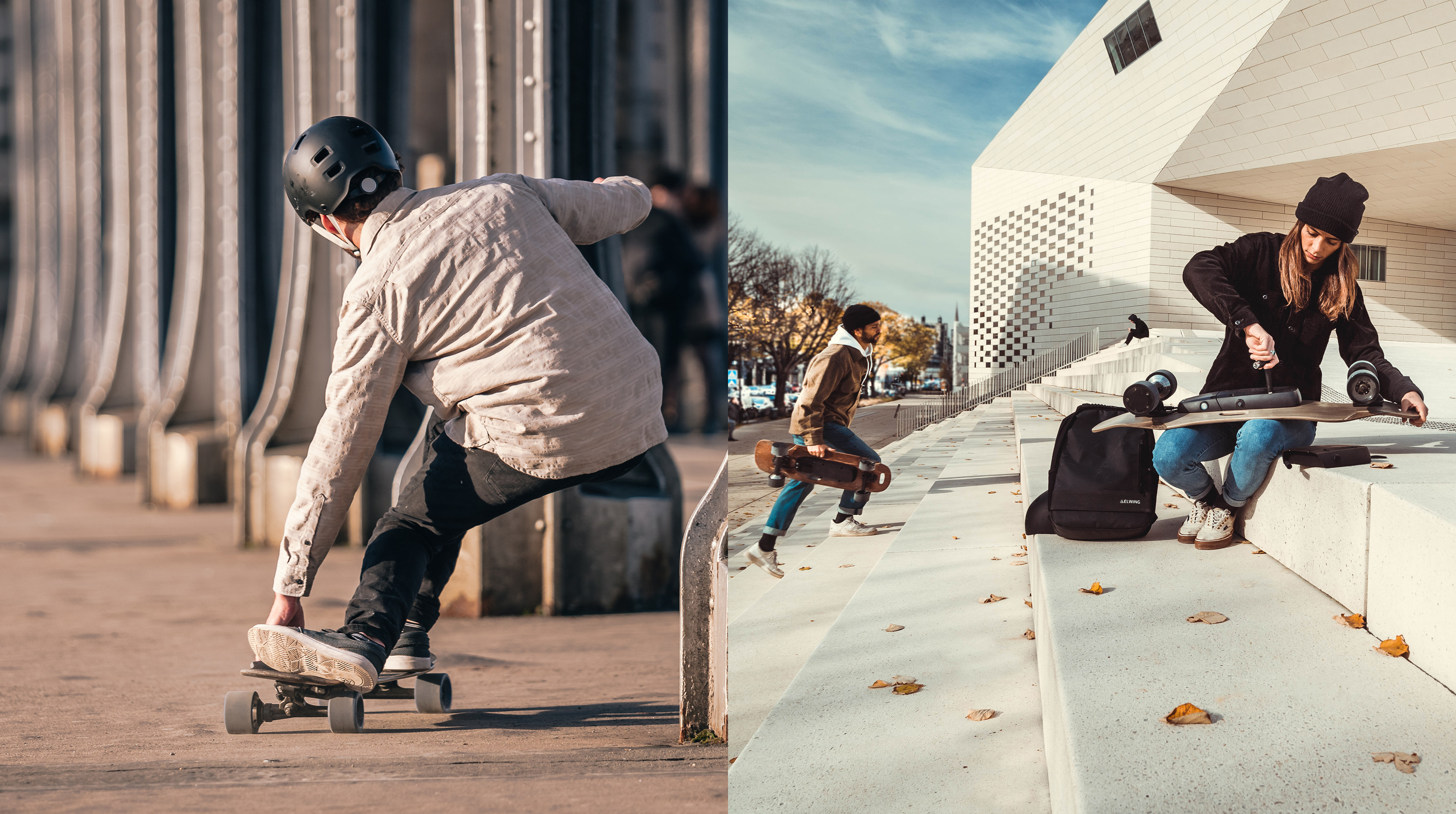 Passionnés par les sports de glisse et la liberté, leur métier est de concevoir et distribuer des solutions de déplacement personnel pour les besoins du quotidien (vélos électriques, skates électriques, accessoires, services). Elwing cherche constamment à supprimer les contraintes et frictions des trajets quotidiens pour les rendre savoureux et uniques.