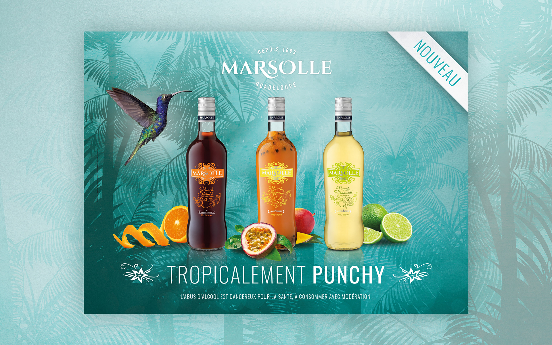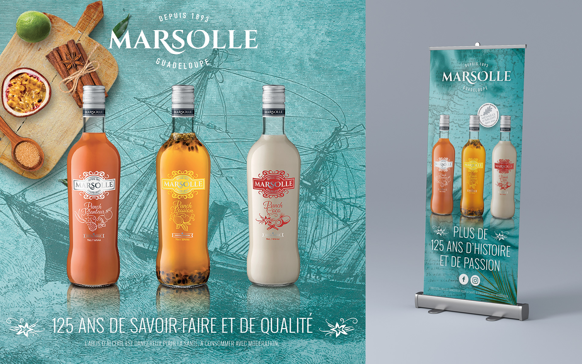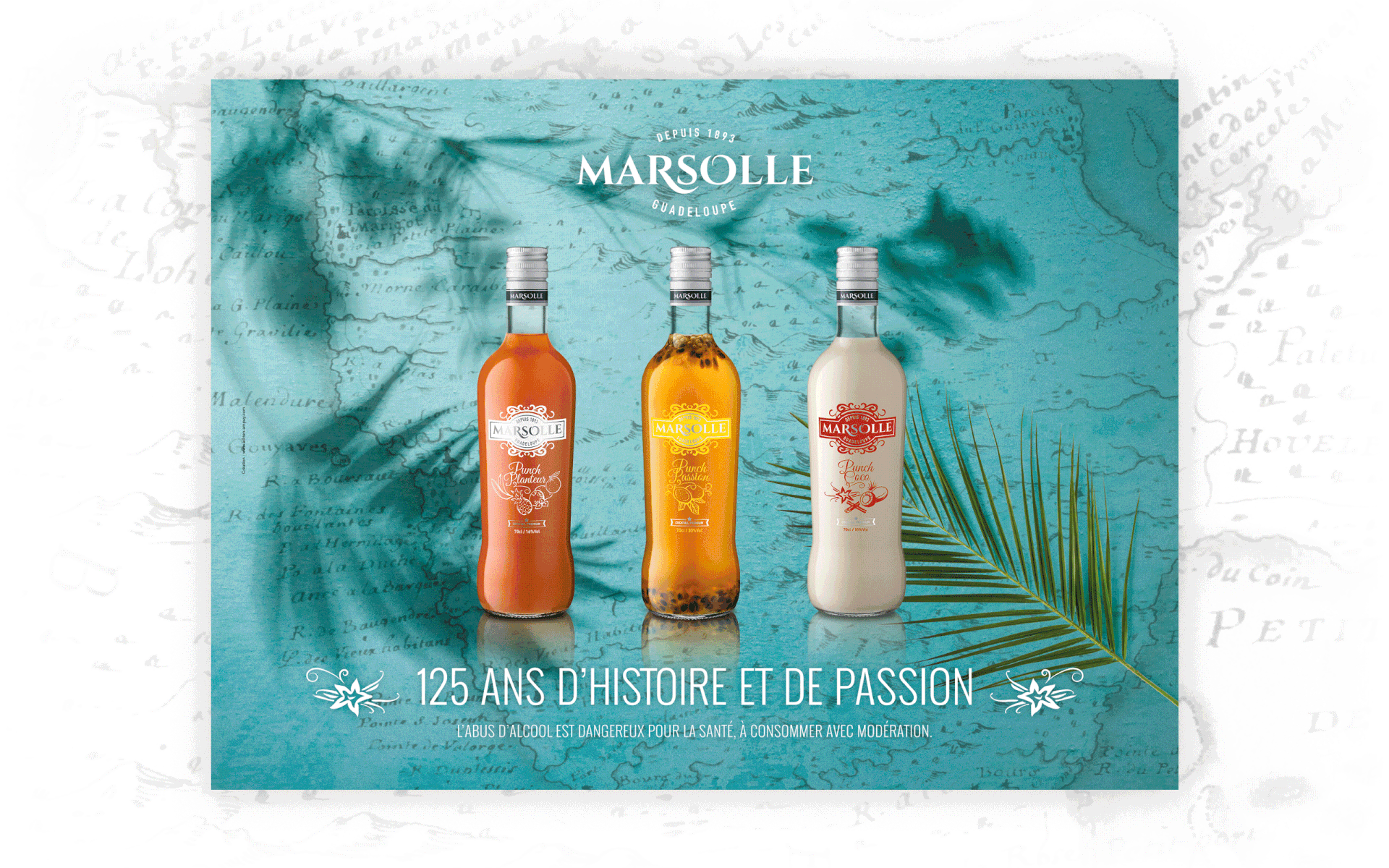 La famille Marsolle perpétue son savoir-faire de père en fils depuis 1893. C’est la plus ancienne famille Guadeloupéenne de Rhumiers en activité. Le respect de leur histoire, la transmission de leur savoir-faire conjuguée à une passion centenaire pour le Rhum, leur permet de créer des produits de grande qualité. Accompagnement sur l'identité visuelle, mise en place de campagnes de communication globale, création de packaging et autres produits dérivés.