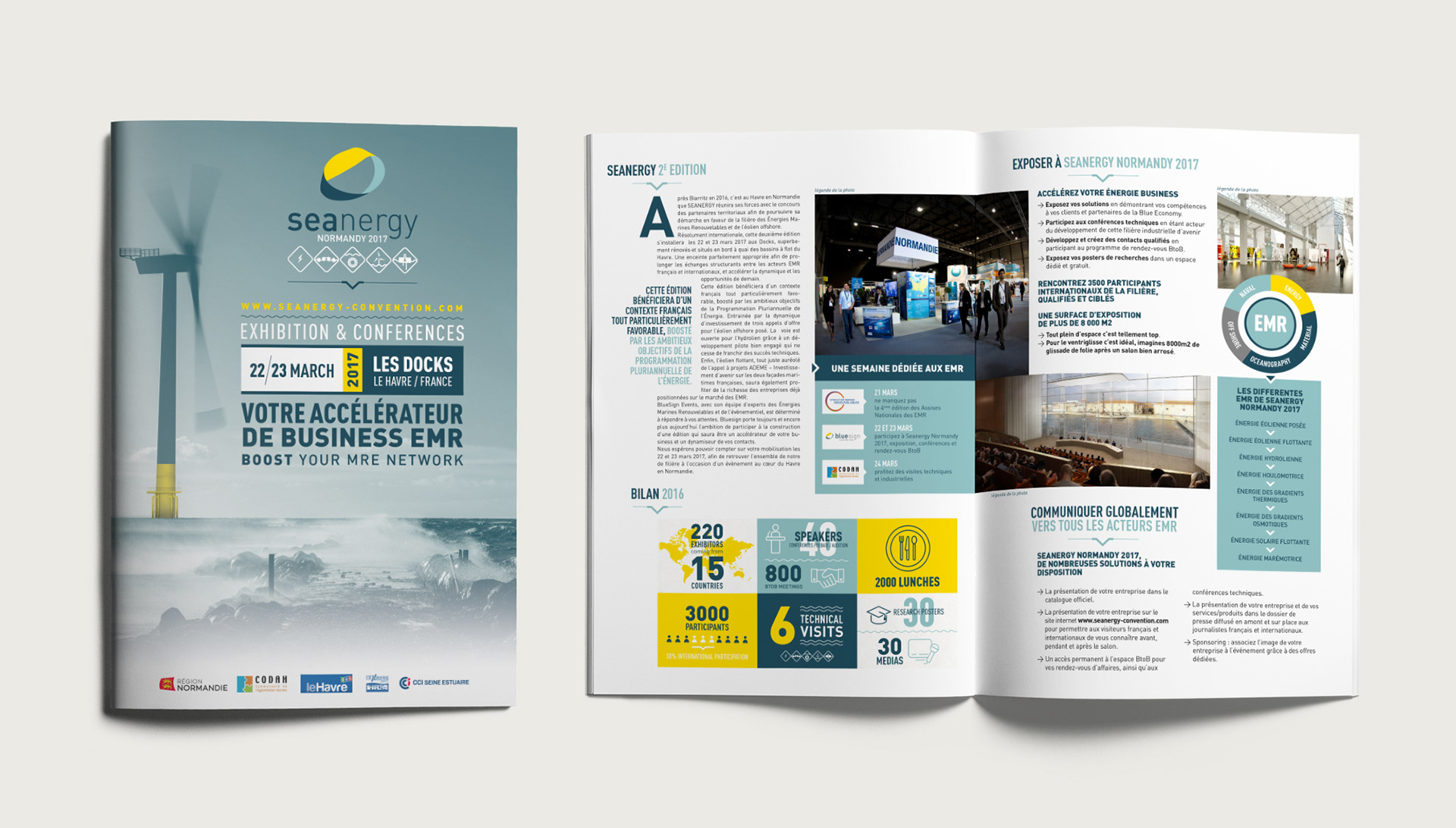 Je réalise depuis 3 ans l'identité visuelle du salon des énergies marines renouvelables en collaboration avec l'agence de communication globale Forget Me Not.